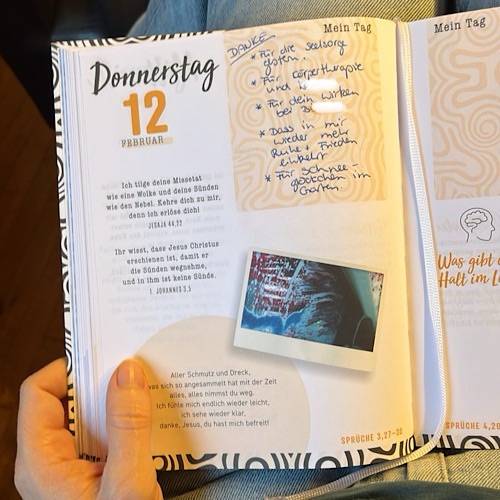 Ich nehme mir Zeit in Ruhe zu frühstücken und mit Gott in den Tag zu starten. Am Morgen lese ich immer die Losung, mache mir ein paar Gedanken dazu, bete und schreibe auf, wofür ich dankbar bin.