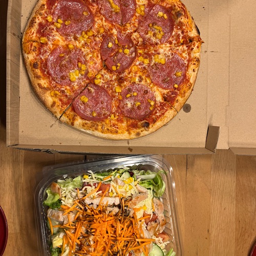Bild 10: Pizza und Salat von unsre Lieblings-Pizzaria am Abend 🙂